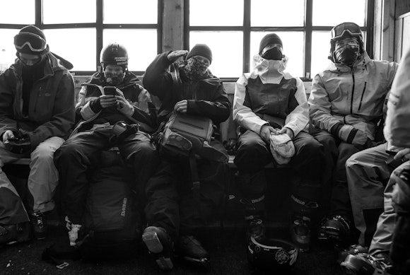 At 8:44 am on February 18th, 2021, the early tram riders finished up the last bites of breakfast burritos and the last sips of hot chocolates. At 8:45, the door of Corbet’s Cabin opened, and this crew – professional freeskiers and snowboarders -streamed out, but then stopped en masse barely a few hundred feet away from the little tram top shelter.