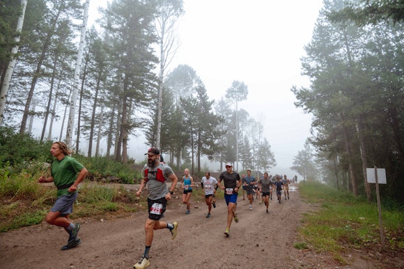 Runners kick off the race at the base of Teton Village on the Wildflower Trail.