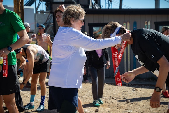 Cheers from the crowd, the smell of bacon and the relief of finishing welcomed each racer. JHMR Aerial Tram mechanic Chris Onufer, who on March 7th 2010 tragically passed away in an avalanche, mother greets each racer with a medal. We can’t think of a better way to finish a race.
