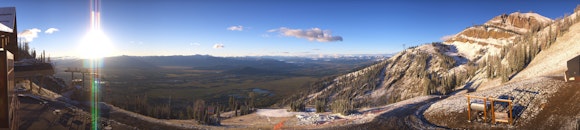 The resort wakes up to a snow-covered upper mountain. Photo from the Bridger Gondola webcam.