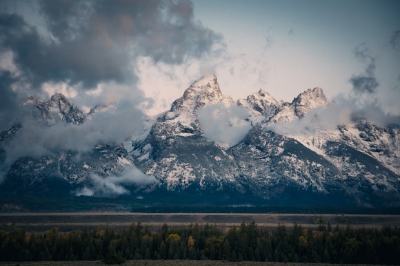 This morning, golden rays illuminated the Tetons to reveal a shimmering cloak of fresh snow. The first snowfall of autumn is the catalyst for change, both in nature and in mindset. It conjures thoughts of last winter and the winter yet to come. Autumn is the season of patient anticipation, nervous excitement, and a visual transition between two beloved seasons. From atop the Bridger Gondola, this transition is apparent in the form of a visual gradient of seasons, available at a glance around the valley. At the heart of it all, the winding, magnificent Snake River endlessly flows and connects all seasons. The once-emerald glow of the valley floor has begun fading to brown. Golden clusters of transitioning trees dot the landscape. Climb higher and see sunbeams perforate the swift, low-flying clouds, quietly creating shadows that cover the foothills and forests. Ascend beyond that and land in a different season entirely.