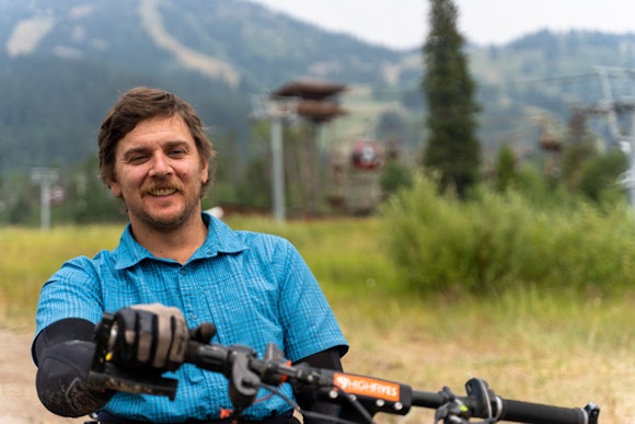 Joe Stone from Teton Adaptive Sports after a ride in the JH Bike Park.