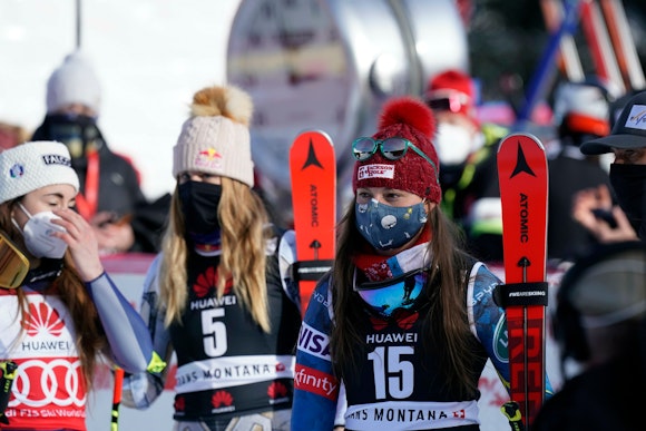 The one upside of Covid for us has been that since resorts are mostly closed to everyone except racers, resorts are more willing to let us train than they usually are. European resorts love racers but they would rather have paying customers than long speed courses blocking half the resort. But when they can’t have the former, they happily accept the latter. Besides having to deal with ski tourers, which are everywhere outside of closed courses, and occasionally get into areas they shouldn’t be, the training has been very good. We do often train with other teams, but stay separate from them, riding different chair lifts and giving space at the start.