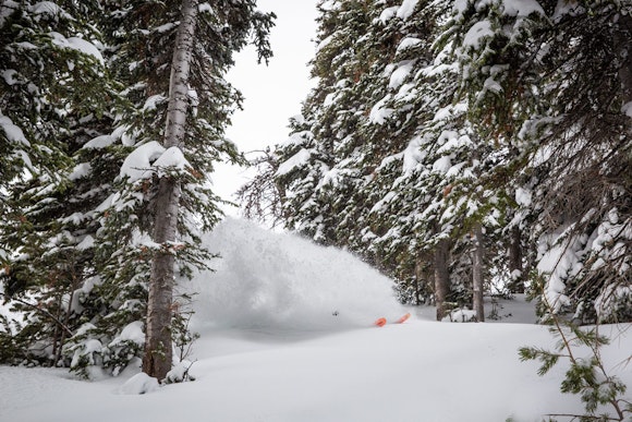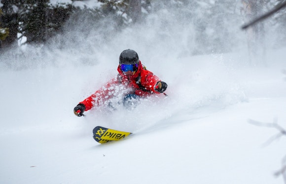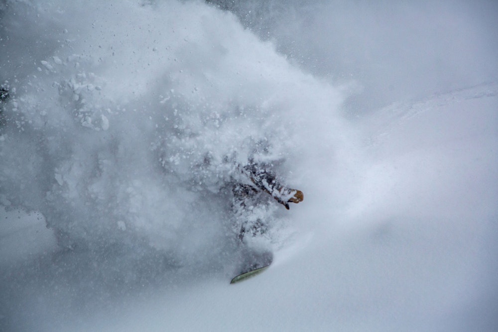 Mark Carter enters the powder vortex on a 13″ day.
