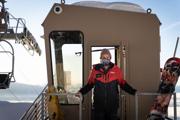 “It stays up, keeps me warm, and I can breathe,” says Zeliff. “When I ski, I pull it down and use my buff, and in line, I pull it back up.” Zeliff says that it’s all about finding little tips and tricks to ease new transitions. “Skiing is athletic, and I often find myself coming into the lift line huffing and puffing. So, instead of skiing right into the corral, I go off by myself, and make sure my mask is secured properly. I’m of a healthy demographic, but I want to make sure everyone feels safe. It’s important for locals to lead the charge, so visitors follow suit.”