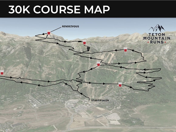 30K Race Course Details: Race Start/Finish is in the Bridger lawn next to the Bridger Gondola uphill to Seven Bridges, continues up Saratoga Trail until it connects with the Wildflower Trail, from there runners will go North on an access road until they reach the bottom of Crags Run where they will ascend the ski run and continue back South until they reconnect with the Wildflower Trail. Runners then continue up the Cirque Trail to the Top of the World. After peaking at Rendezvous Mountain, work your way back down the Upper Rock Springs Trail until reaching a maintenance road which then guides you back to the Wildflower Flower Trail. Runners continue onto the Wildflower Trail until reaching the base area finishing in the Bridger lawn.