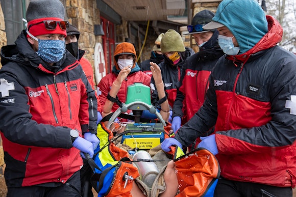 Chapman was still edgy that the window for this man’s survival was closing fast, but when patrollers started appearing with supplementary oxygen, advanced airway management devices, and an AED, his tune changed.