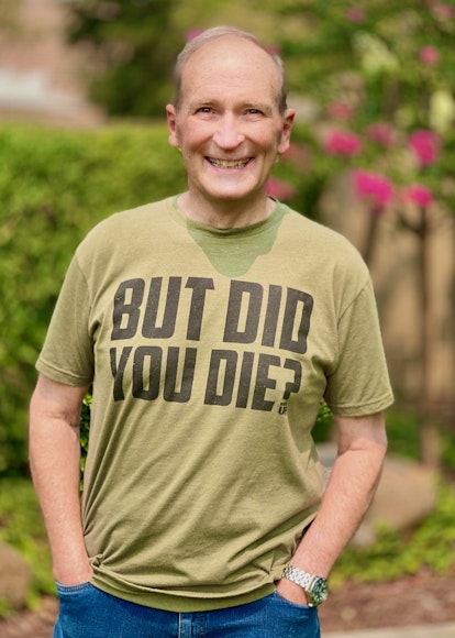 One thing that hasn’t changed much is Jim’s wry humor. In addition to having a wife who now specializes in resurrection, he can often be seen sporting a new T-shirt that says “But Did You Die?” A couple times, perhaps, but who’s counting?