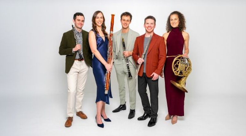 Crowd-favorite woodwind quintet WindSync returns to the Grand Teton Music Festival for an evening of world-class chamber music. Featuring works by Mozart, Phillip Glass, Nadia Boulanger and more, the quintet imbues classic and modern works with their infectious energy and virtuosic musicianship. Versatile and vibrant, the musicians of WindSync “play many idioms authoritatively, elegantly, with adroit technique, and with great fun” (All About the Arts), showing off the uniquely wide-ranging sounds of the wind quintet. WindSync’s charismatic and personal performance style, combined with a three-pronged mission of artistry, education and community-building, lends the group its reputation as “virtuosos who are also wonderful people, too” (Alison Young, Classical MPR). WindSync is Garrett Hudson (flute), Noah Kay (oboe), Graeme Steele Johnson (clarinet), Anni Hochhalter (horn) and Kara LaMoure (bassoon).